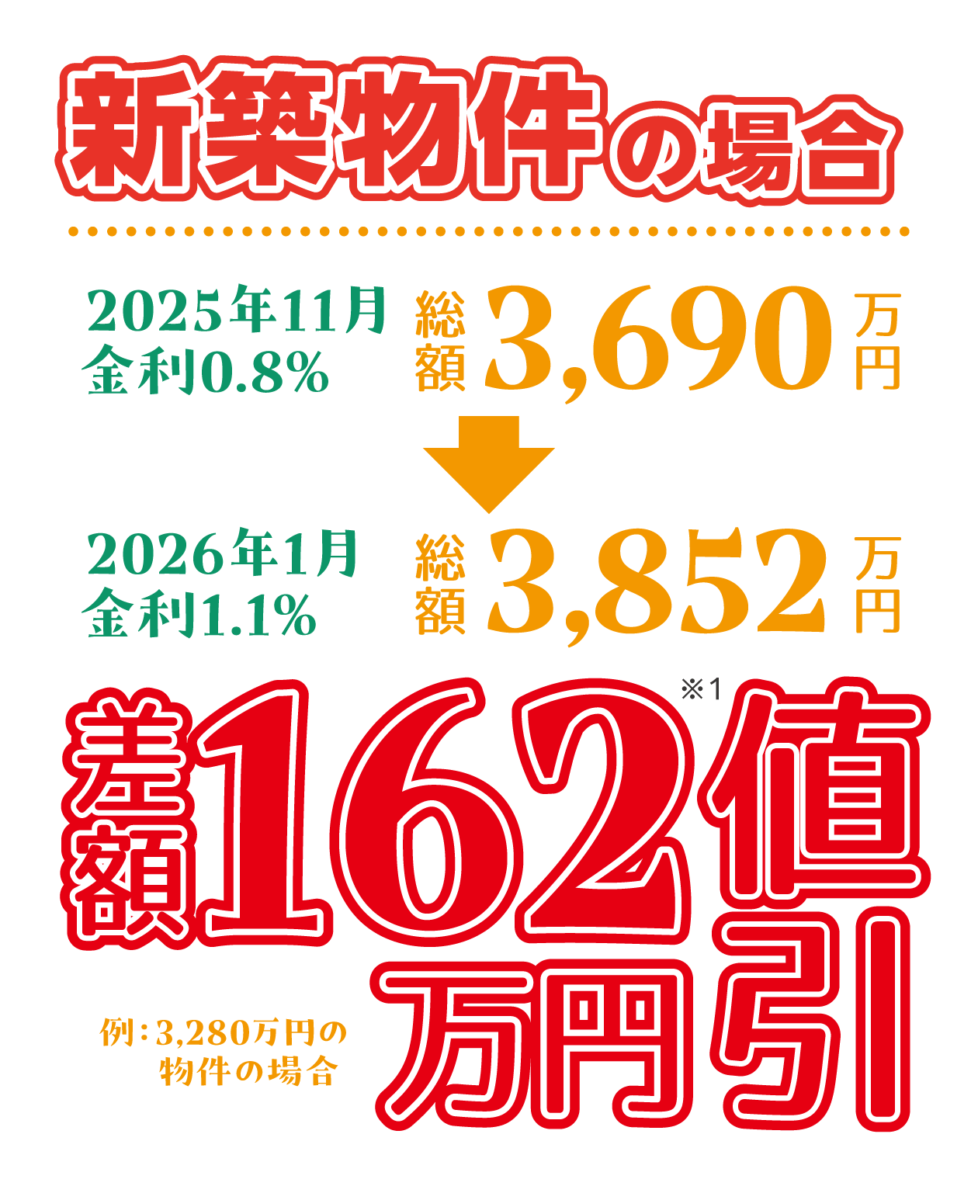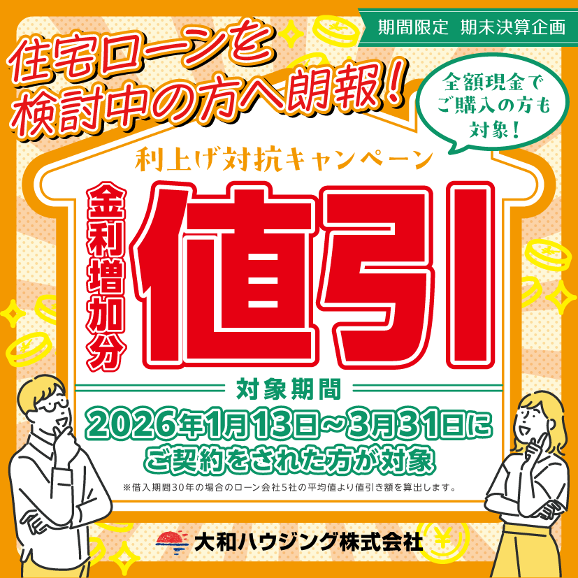 金利の影響を受けず、より有利に住まいを手に入れていただける期間限定の取り組みです。