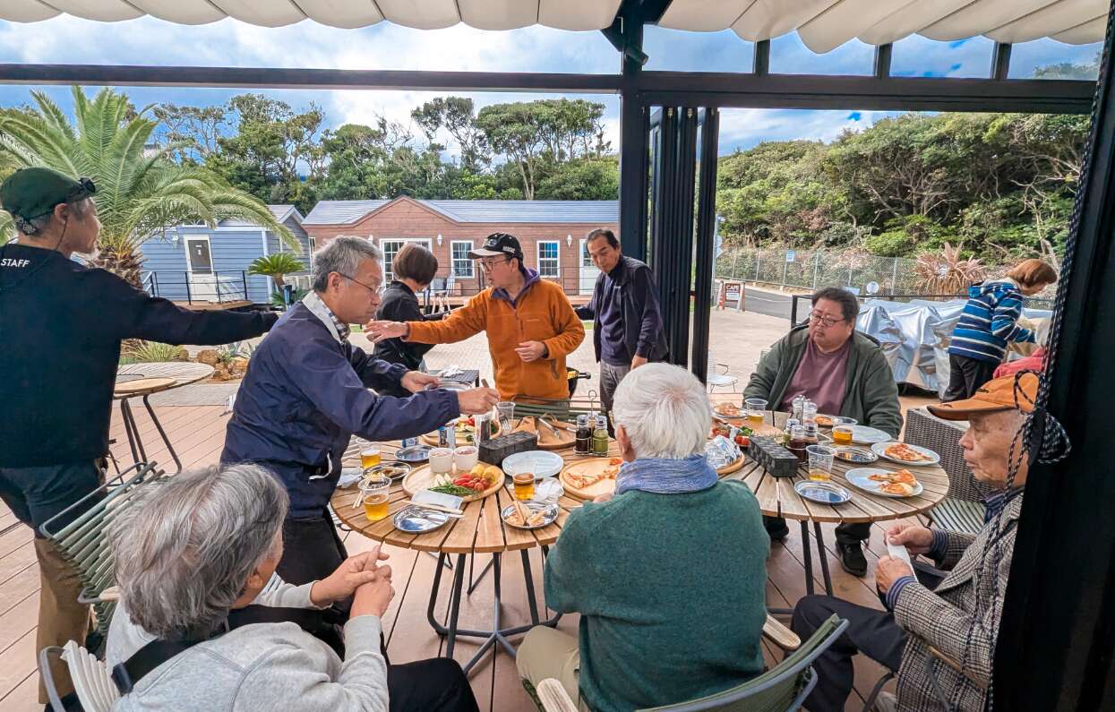 今年は Glamping Kashima 753 でバーベキューを楽しみました。 海を一望できるテラスでの開催で、開放感を感じながら和牛を堪能しました。カレーやピザなどテーブルのまわりは終始にぎやかに。 焼き加減を見ながら「もう少し焼く?」「それ食べたい!」と声を掛け合って、自然と会話も広がりました。