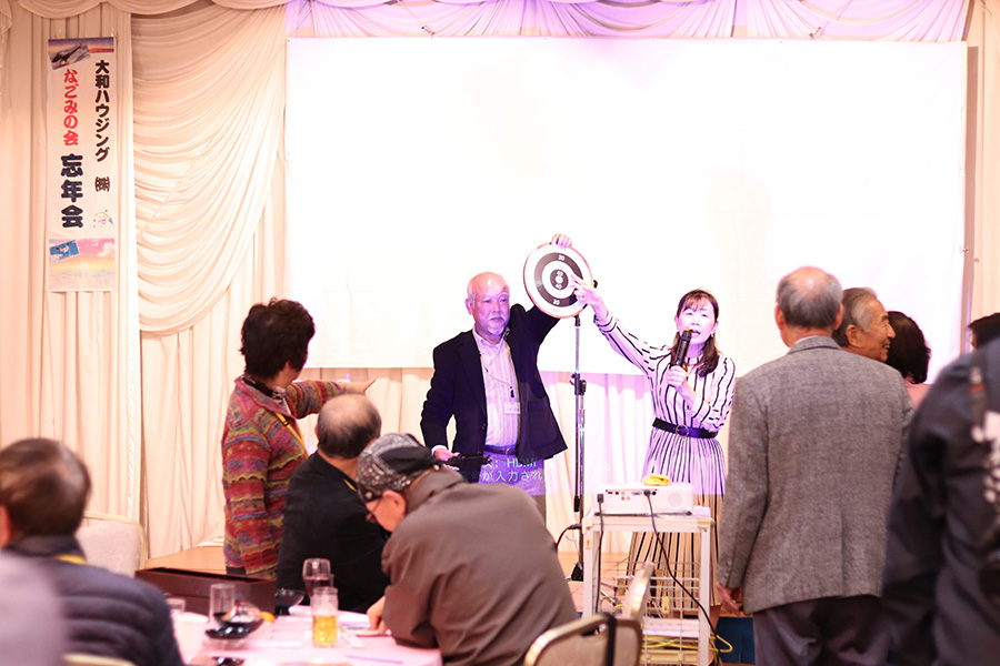 「ビンゴゲーム、的当てゲーム、テーブル対抗ゲームなど、役員さんたちが知恵を絞ったアトラクションも大盛況です。賞品がどんどん消えていきます。当たった方の歓声、外れた人の悲鳴が交差し、賑やかさも頂点に達したところでゲームタイムは終了。興奮で倒れるかと心配された数人もなんとか危機は乗り切った様子。スタッフも一安心です。