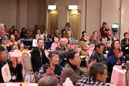 初めて参加する方は「豪華な会場だなぁ、一体何がはじまるの?」と興味津々です。そう、これが大和会忘年会の恒例の風景なのです。