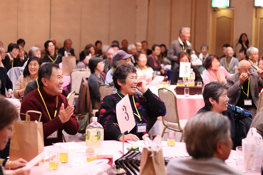 地区ごとに分けられたテーブル席からは、久しぶりの再会を喜ぶ声がこだまします。