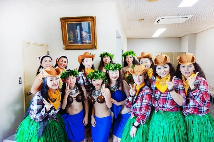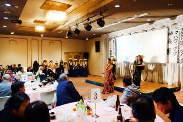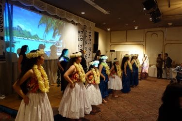次にスタジオホアロハ主催、荒川先生率いるハワイアンチームの登場です。演出を変えて毎年ご出演くださる常連チームですが、初めて鑑賞する男性陣の顔は緩みっぱなし。