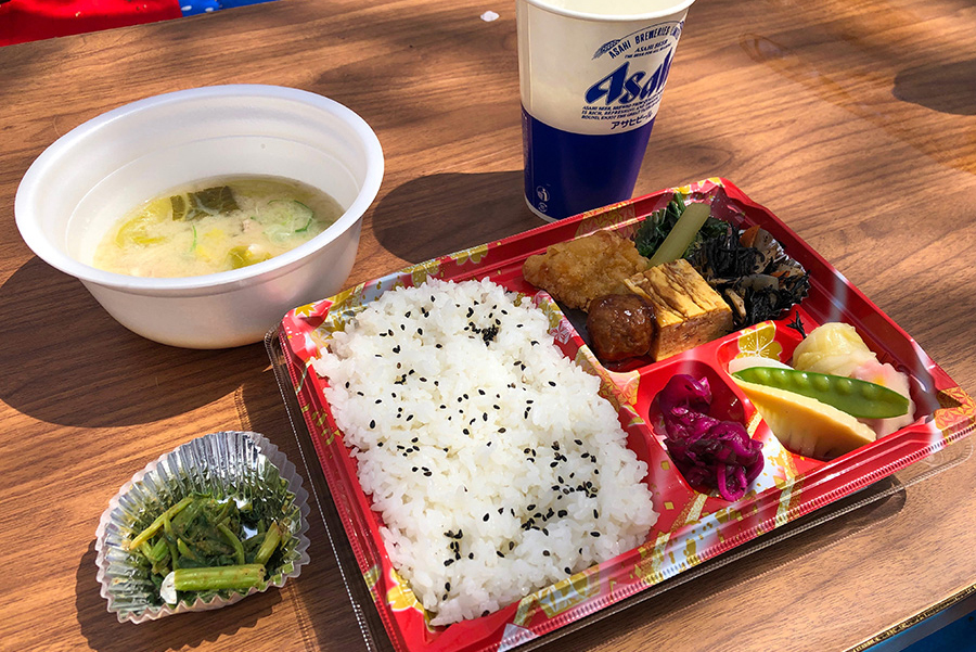 なんて贅沢なお花見なのだろう…弁当と発泡酒が何倍にもおいしく感じる…。 会場が盛り上がりを見せる度に吹く南風が起こす桜吹雪に見とれているとあっという間に閉会の時間となってしまいました。