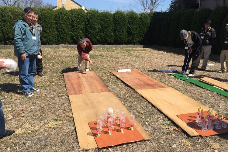 もう1つは、ボウリング。このボウリングは、ペットボトルをボウリングのピンに見立てて、ソフトボールを投げるという独自のゲームです。