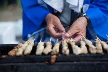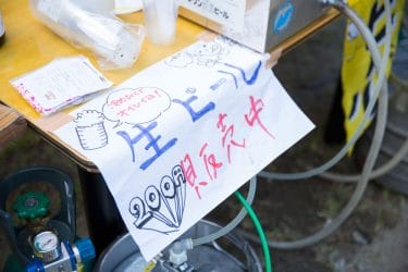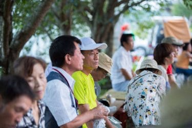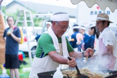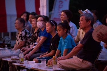 やきそば・やきおにぎり・フランクフルト・焼き鳥・枝豆・きゅうりの浅漬・とうもろこし・・・とお腹を満たし、またアルコールのつまみにもってこいの食べ物の屋台がずらり。ましてや、生ビールの販売もあって、まさに「宴会」気分です。
