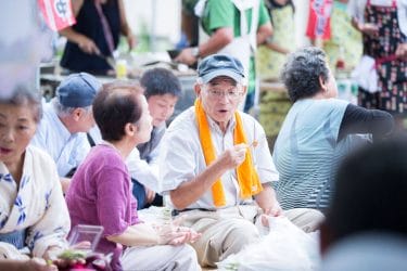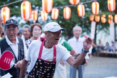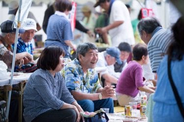 地区別に席を設けているので、顔なじみとの歓談を楽しんだり、家の近い新しい友人ができたり、楽しい時間をすごしておられました。若樹会の方による日本舞踊は、祭りの気分を盛り立てます。その後、地区対抗のゲームです。ダーツゲームに、真剣勝負!当たっても当たらなくても、みんなで一緒に声援を送るって楽しいですね。