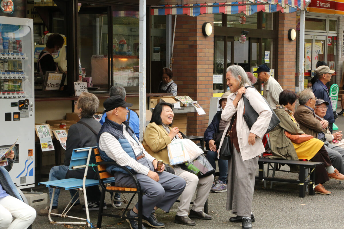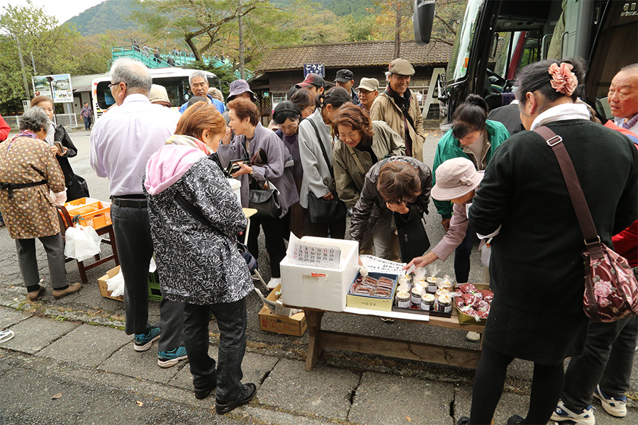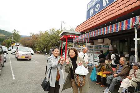 駅前ではご当地野菜販売があったのでサツマイモを試食。大和会の皆さんもいっぱいお土産にご購入。