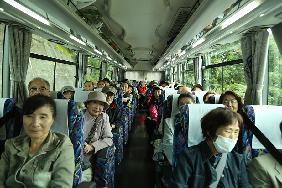 バスのマイクでみなさんに呼びかけた後、無事に集合写真を撮り終えました。