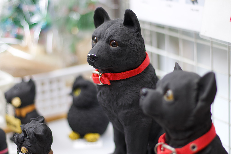 美術館を見終えた人は隣のお土産屋さんも見ています。皆さん色々買われていますが、私のオススメは墨でできたワンちゃんの置物です。