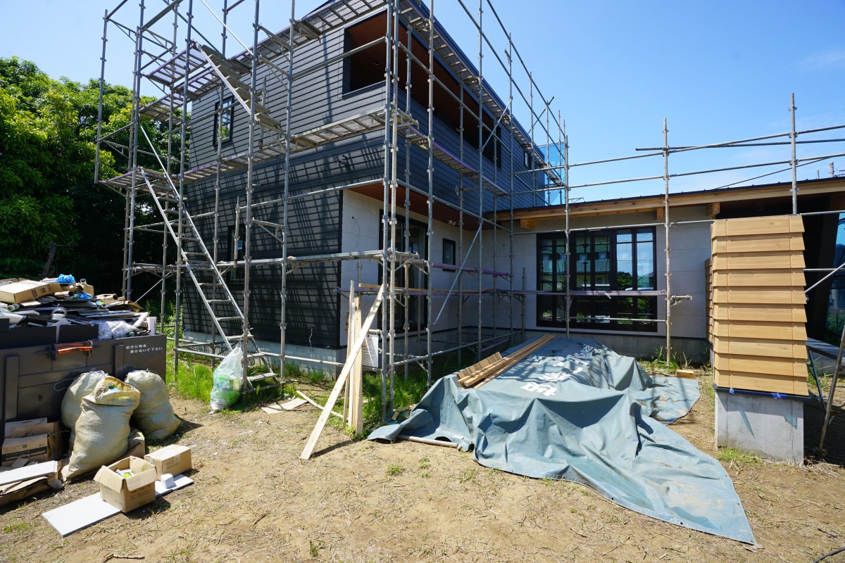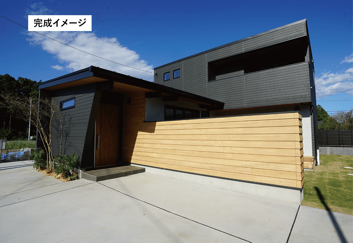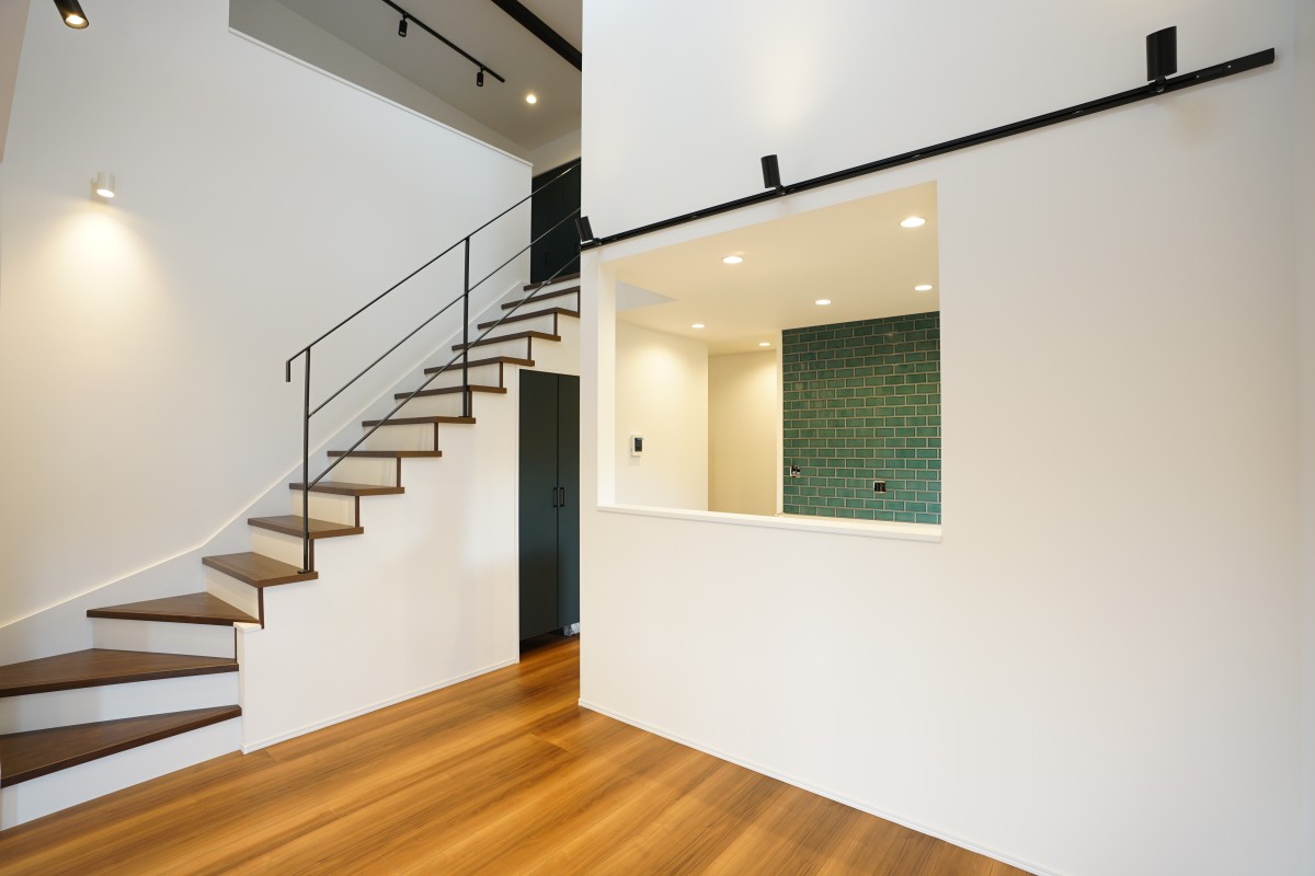 アクセント壁は外壁材を使用しておりオシャレ度UP