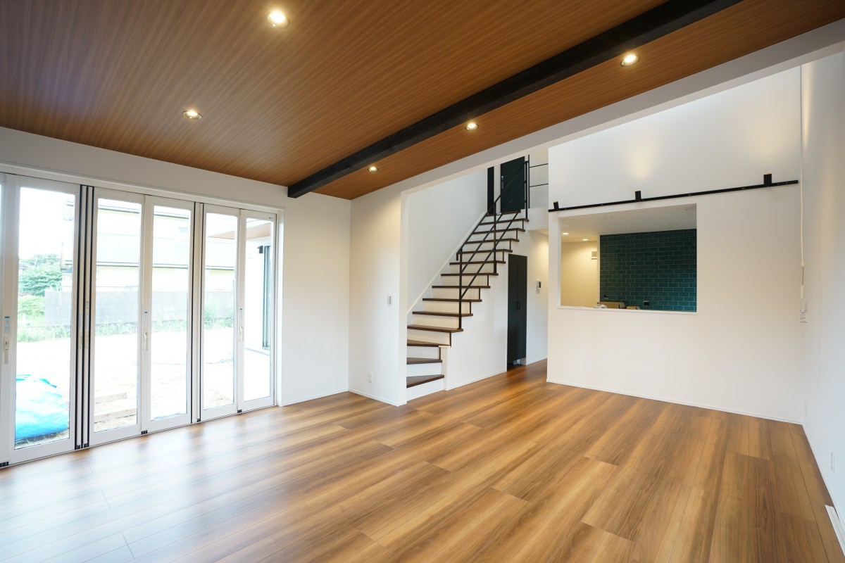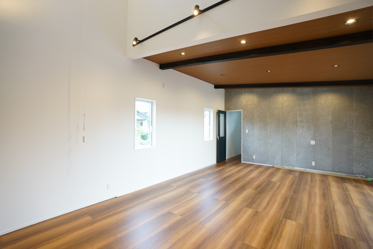 アクセント壁は外壁材を使用しておりオシャレ度UP!