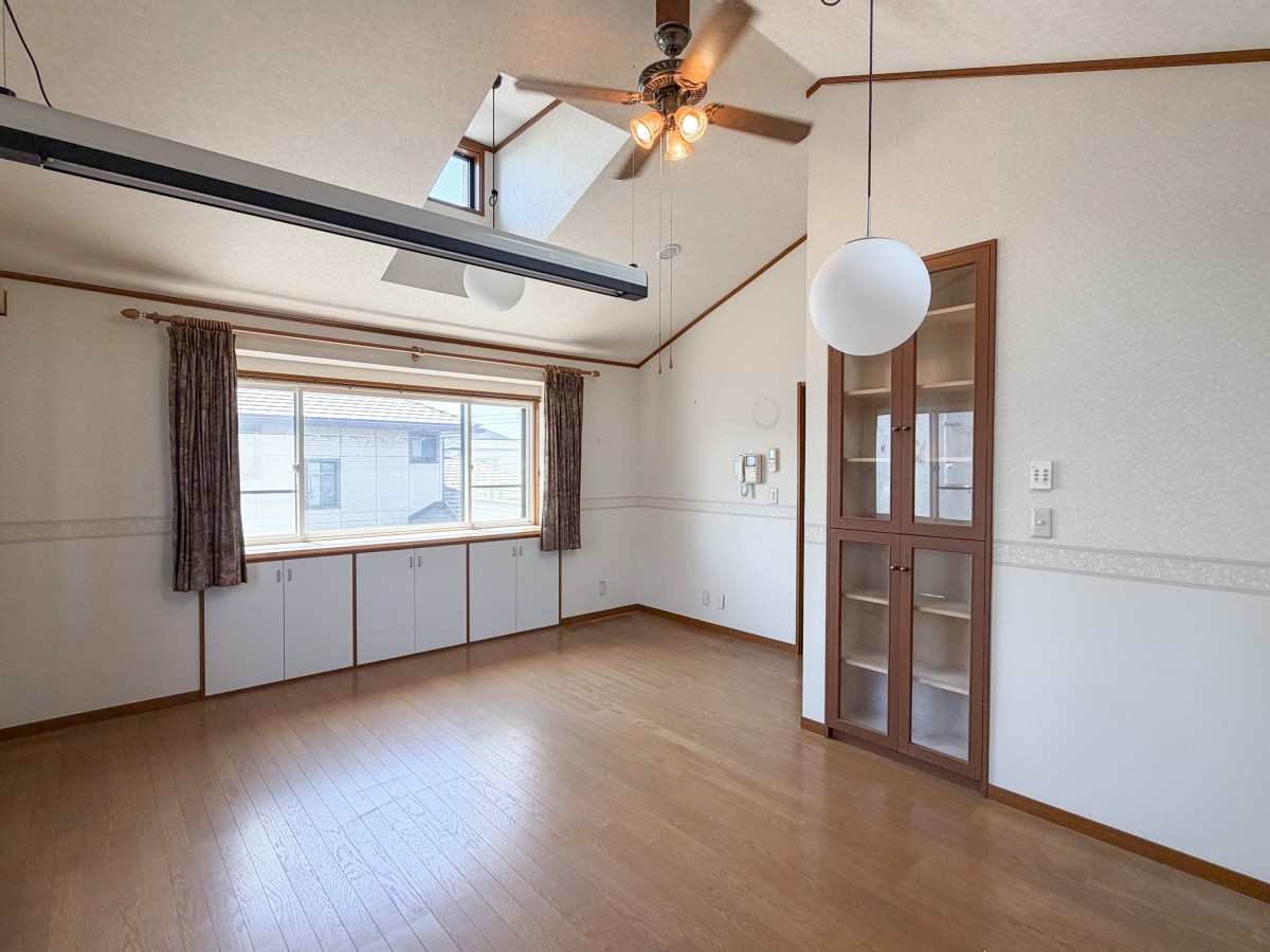 「ニュータウン入口」バス停まで徒歩約3分!コンビニ(徒歩約4分)など生活利便施設が徒歩圏内に揃う好立地。天窓付きの吹き抜けにシーリングファンを備えた明るく開放的な空間に加え、2階にも手洗い・トイレスペースを完備。勝手口付きで家事動線にも配慮された、快適性と利便性を兼ね備えた住まいです。