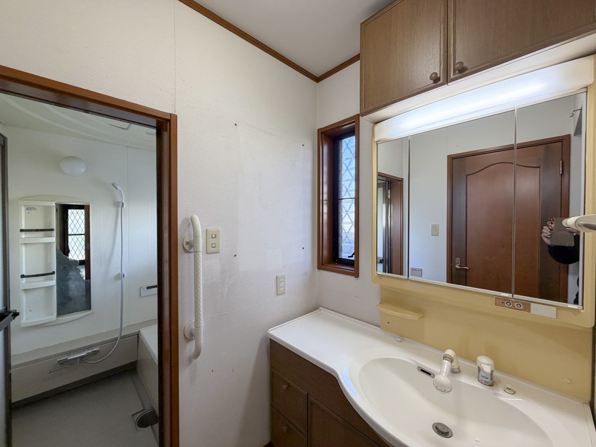収納豊富な三面鏡付き洗面化粧台!朝の身支度もスムーズ!