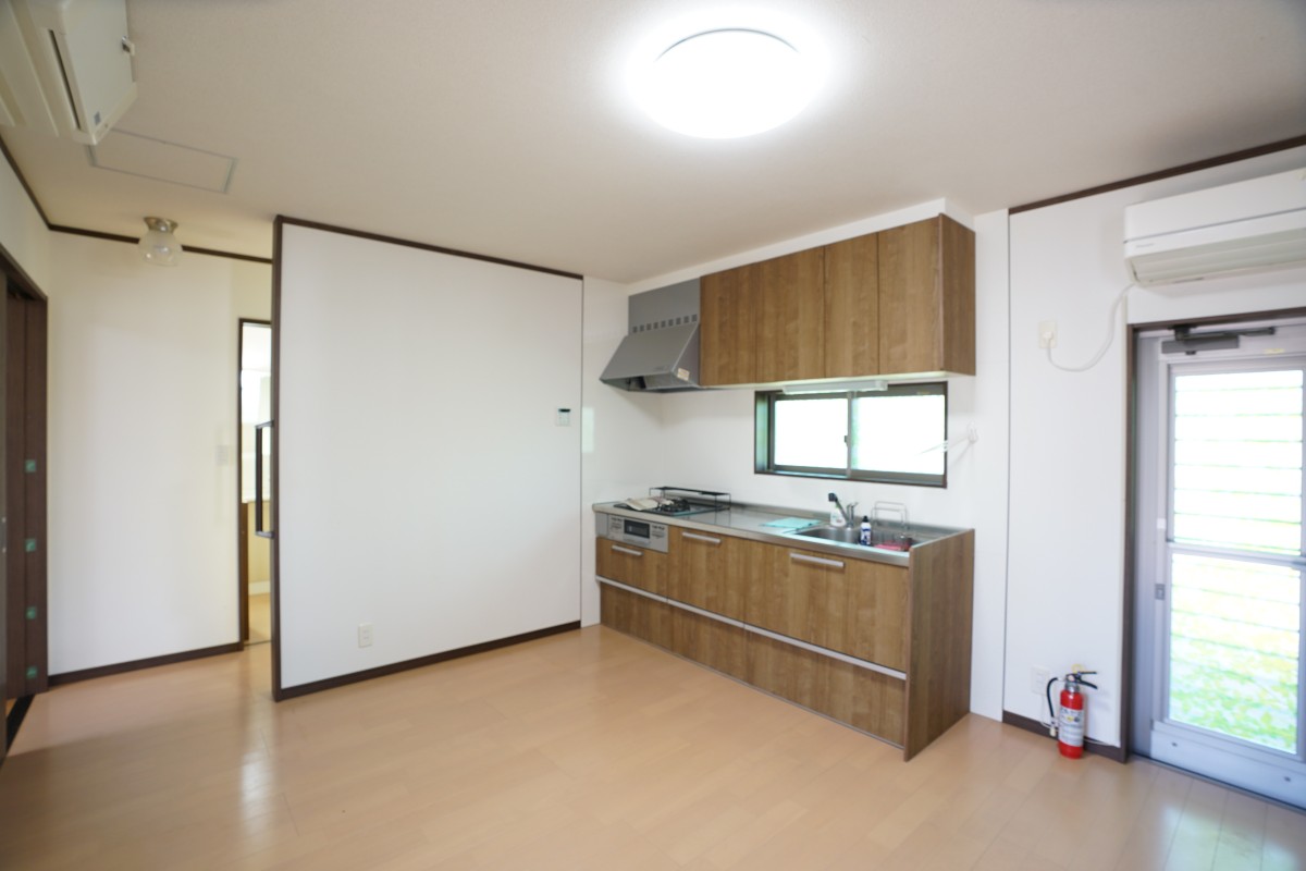 11帖のLDK! ダウンライト増設リフォームでより明るい空間にしてお引渡しします! 2018年製エアコン付き! ※エアコンは契約不適合責任の対象外となります。あらかじめご了承ください。