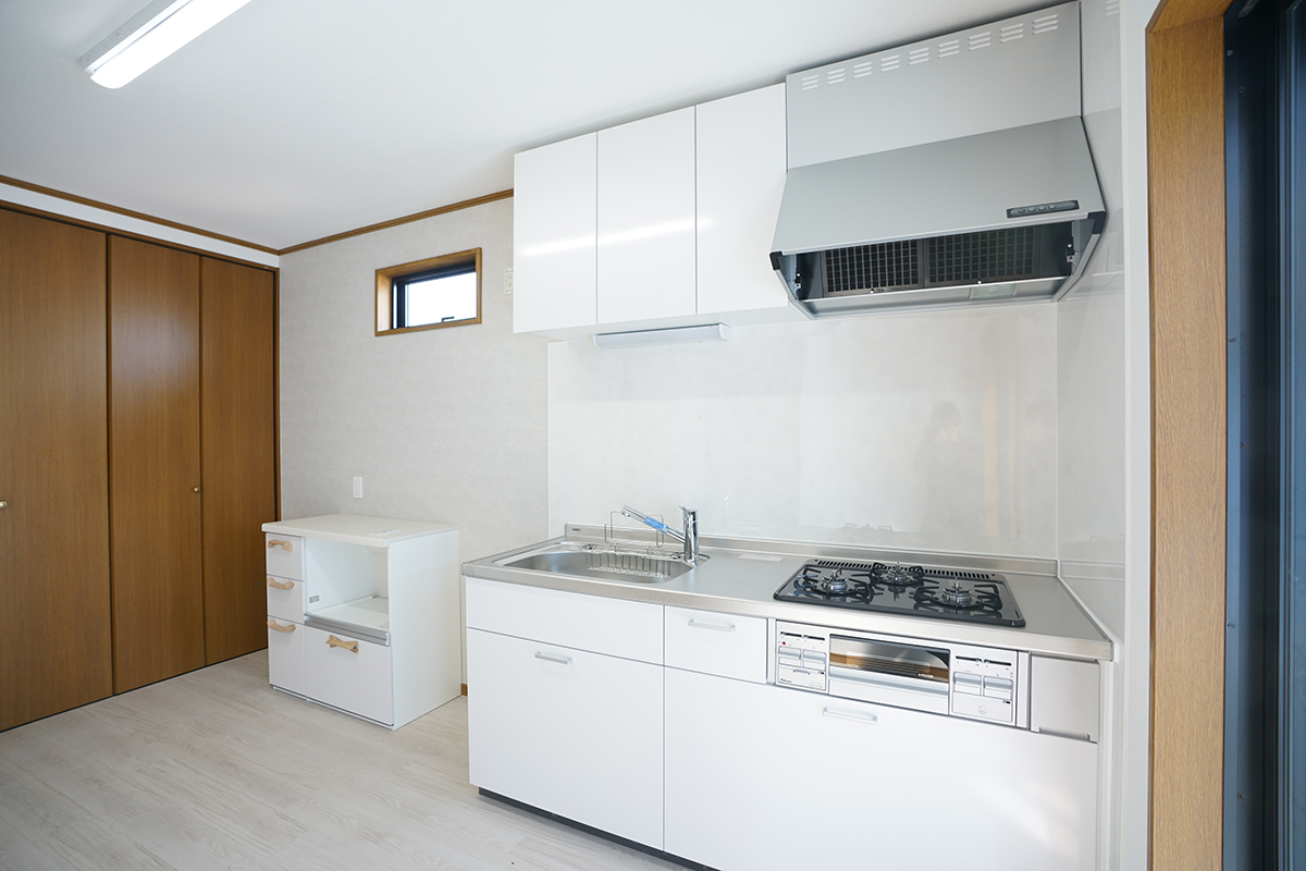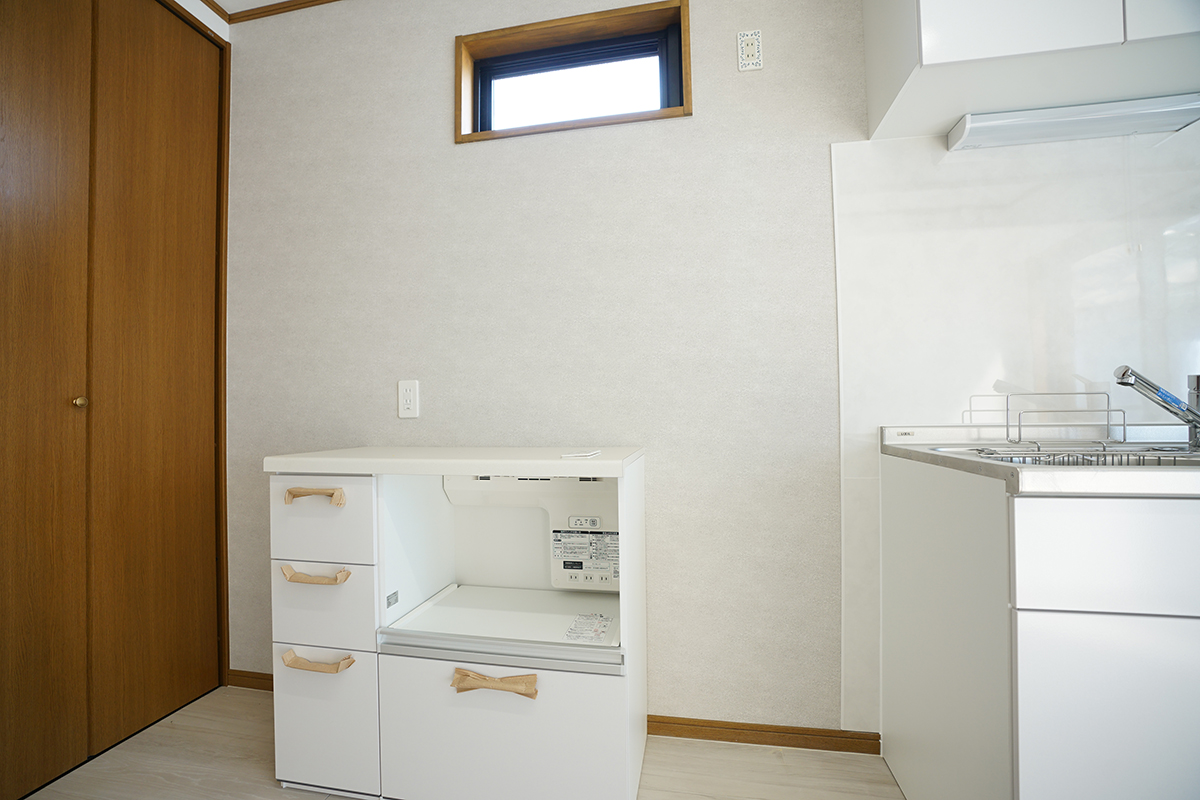 90㌢のカップボードも設置!冷蔵庫の幅も見て設置しております。