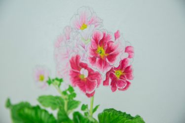 〝ボタニカルアート(植物画)〟という、植物を正確に、図鑑に掲載されているような緻密なタッチで描くことです。身近にある植物を素材として、ありのままに表現し、正確に色を重ねてゆくのだそうです。10月には潮来で展示会もあり、それに向けて出展作品を制作中です。