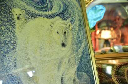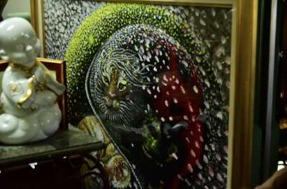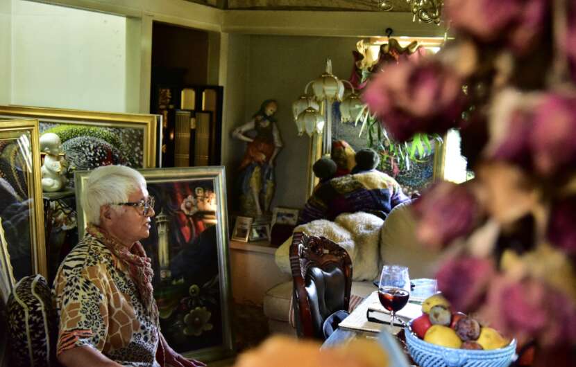 今回、お話をお聞きしたのは、東京都心から鹿嶋に移住されて10年ほどになるTさん(76歳)。移住当初は高速バスやご自身の車で都心に通い、銀座でバーの経営を続けておられました。今はお仕事に区切りをつけて、愛犬と鹿嶋でゆったり暮らしておられます。すぐに目に入ってくるのは、大きなキャンバスに描かれた力強い絵画。Tさんご自身の作品で、鹿嶋に来てから描き始めたものとのこと。「ちっちゃい頃から絵を描くのは好きだったんです。実家は田舎の農家だったので、豆を並べて床に猫の絵を描いていたのを覚えています。母親が「これあなたが描いたの?」と驚いていました。私が描く絵は一つひとつ点で描く点描で、長い時間をかけて描くものもあります。仕事や子育てが忙しいときはできませんでしたが、今は何も考えず、いい作品をつくって、時々、個展を開けたらと思っています」。